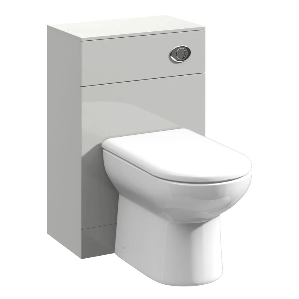 A 500mm wide gloss light grey WC unit with toilet and cistern, part of the Cove range of bathroom furniture. Ideal for giving your bathroom a fresh clean modern look.