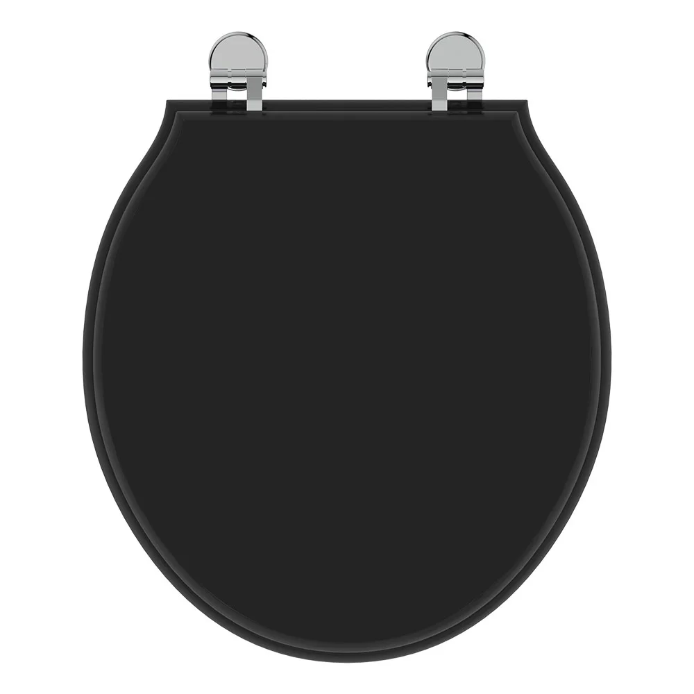 A traditional style toilet seat designed for use with Ideal Standard Waverley toilet pans. Featuring normal close chrome plated hinges, this practical and durable seat can withstand everyday use.