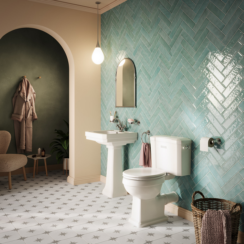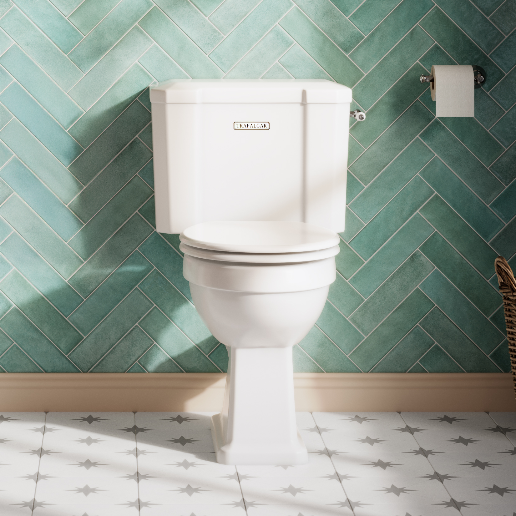 Elevate your bathroom with the Trafalgar Close Coupled Traditional Toilet. Designed to seamlessly blend with classic bathroom aesthetics, this toilet features a crisp white finish that complements existing fixtures and fittings. Made from high-quality ceramic, the Trafalgar Close Coupled Toilet ensures durability and longevity, making it a smart investment for your bathroom. It is compatible with round toilet seats (not supplied).