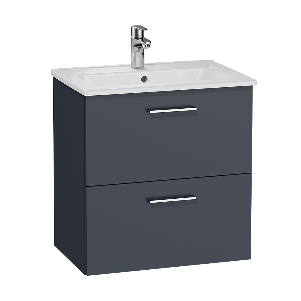 VitrA Evi Complete Wall Hung Bathroom Suite (Rimless Toilet with Soft Close Seat, 1120mm WC Frame with Black Flush Plate + 600mm Gloss Anthracite 2-Drawer Vanity Unit)