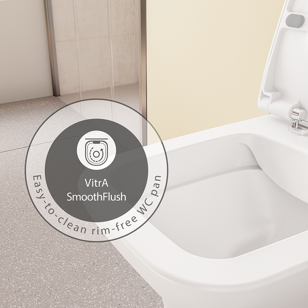The VitrA Evi Complete Wall Hung Bathroom Suite is the epitome of modern elegance and functionality. It features a sleek, rimless toilet with a soft close seat, ensuring a quiet and gentle lid closure. The suite is complemented by a sturdy 1120mm WC frame equipped with a chic black flush plate that adds a touch of sophistication. Storage needs are stylishly met with the 600mm gloss anthracite two-drawer vanity unit, offering a seamless blend of design and utility. The vanity’s high-gloss finish and streamlined handles contribute to the suite’s contemporary appeal, while the spacious drawers provide ample room for bathroom essentials. Altogether, the VitrA Evi suite transforms any bathroom into a sanctuary of style and comfort.